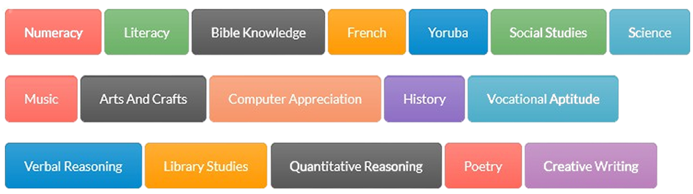 The school curriculum integrates elements from both the British and Nigerian education systems. The subjects offered at the school include: